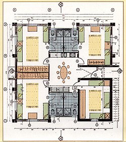 The immediate urgent necessity is to build new dormitory buildings to replace the existing inadequate mobile facilities. Work has started on five separate dormitory units, two floors per unit. Each floor, which has its own separate entrance, comprises four bedrooms, each with its own bathroom facilites, and a central kitchenette / sitting area. There is space for three students per bedroom. Upon completion of all five units, the new dormitory will have facilities for 120 students.