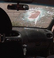 As they passed the village of Luban a-Sharkiya, Arabs suddenly appeared from behind a building close to the road, and hurled stones at the car. From almost zero distannce, one managed to hit the front windshield with a ten-pound stone. The stone passed between husband and wife, hit the back seat, and rebounded with enough force to destroy the base of the brain of Yehuda, asleep in his child seat, facing backwards.